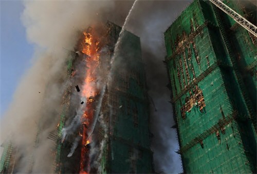 A fire engulfed a residential building in Hong Kong s northern Tai Po district, with plumes of thick gray smoke billowing out as emergency services battled to subdue the blaze