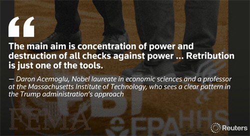At least 470 people, institutions, businesses and other entities have been targeted for retribution in Donald Trump s second term — more than one a day — Reuters finds. Dozens of them have been threatened with federal investigations or other punishments